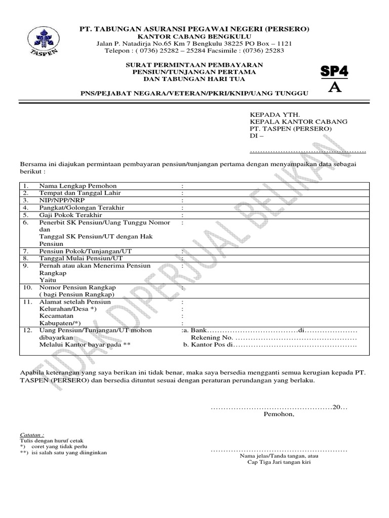 Contoh diatas ialah teladan surat yang digunakan di taspen banjarmasin. Contoh surat permohonan bantuan dana rehab rumah. File draf surat kuasa ahli waris ini berisi pemberian kuasa dari para ahli waris untuk melakukan pembagian. Apabila anda merupakan wni yang beragama islam. Jadi di kantor kepala desa anda tinggal.